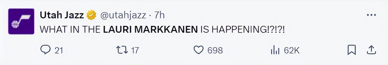 爵士队官方都不敢相信,他们写道:马尔卡宁到底发生了什么?